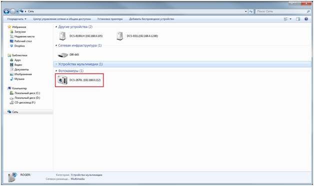 Шаг 3: В разделе Устройства мультимедиа или Фотокамеры найдите DCS-2670L. В названии должен быть отображен IP-адрес камеры.