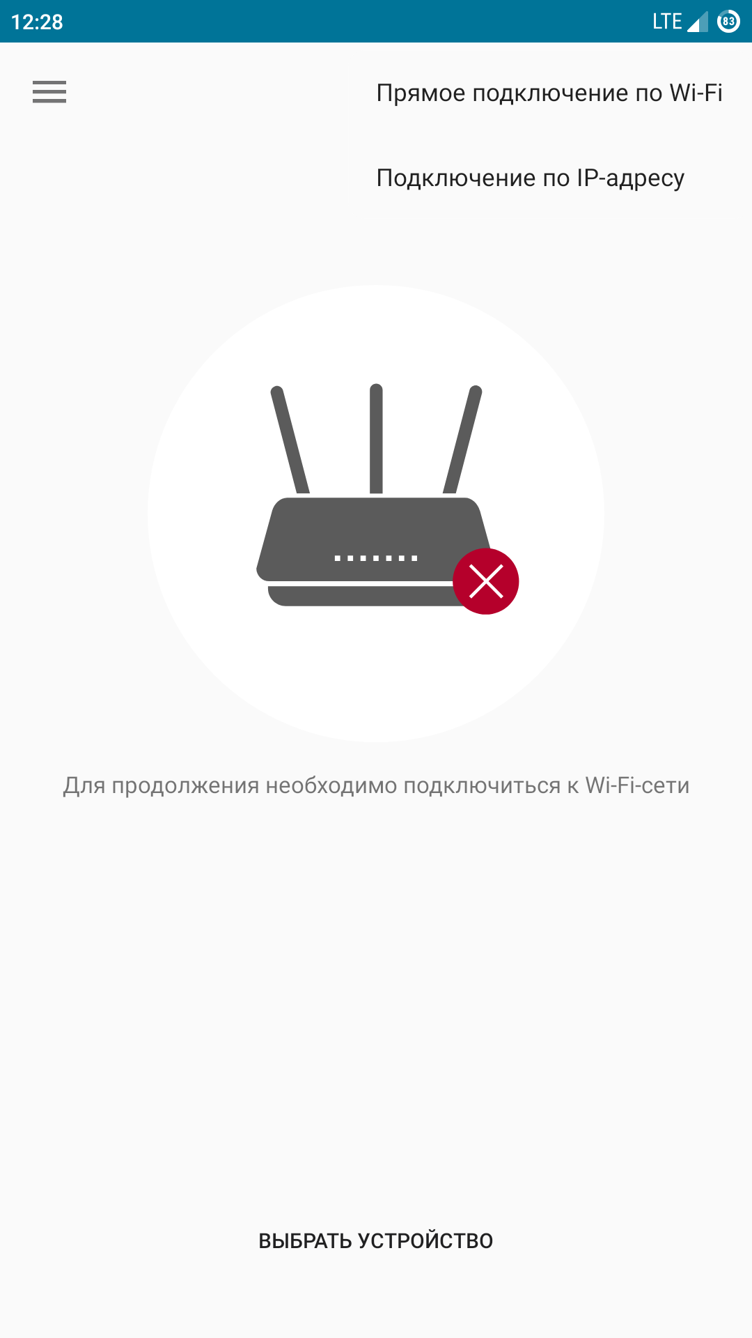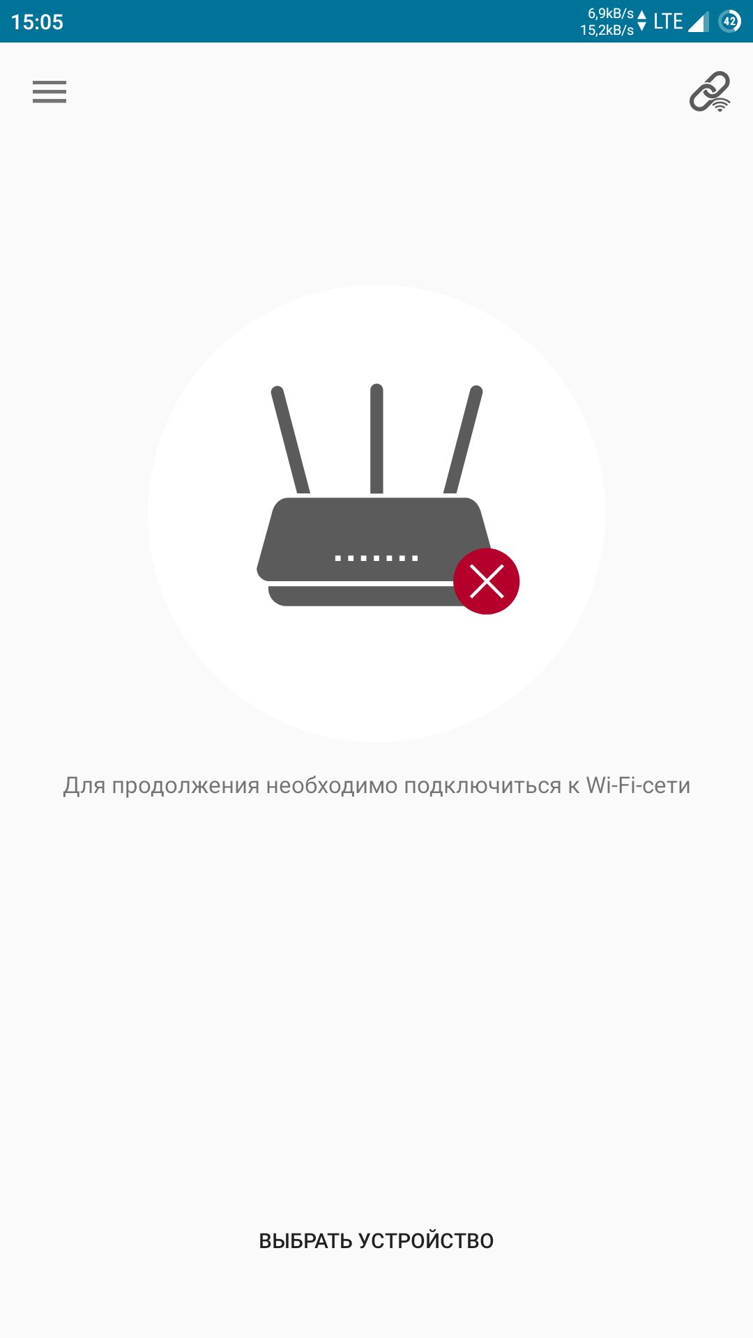 Если вы не подключены к Wi-Fi-сети маршрутизатора, приложение об этом сообщит и попросит выбрать устройство для подключения (не относится к версии приложения на iOS, устройства Apple с операционной системой iOS требуют поиска и подключения к сети Wi-Fi вручную, Настройки > Wi-Fi).