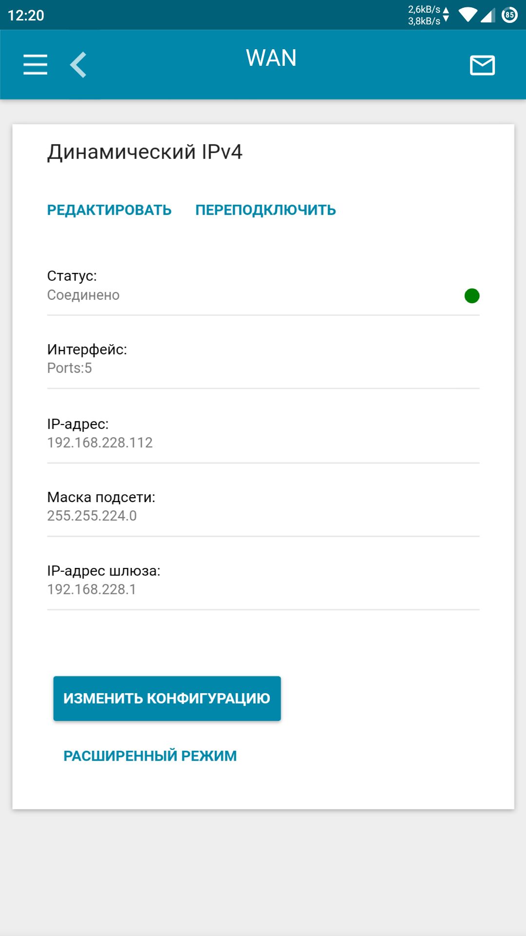 На этом этом настройка завершена. Для удаленного доступа вам потребуется ввести внешний IP-адрес маршрутизатора, используемый для выхода в Интернет. Узнать этот адрес можно в разделе Настройка соединений > WAN (поле IP-адрес).
