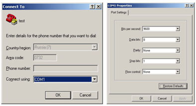 - настройки HyperTerminal.