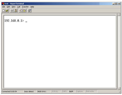 Для конфигурирования данных устройств необходимо получить доступ к их консоли. Для этого необходимо соединить консольным кабелем (RS232<->RS232), который входит в комплект поставки устройств, Com-порт компьютера с консольным портом DSL-1500G. После этого воспользуемся программой HyperTerminal, являющейся частью ОС Windows.