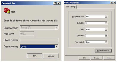 - настройки HyperTerminal.