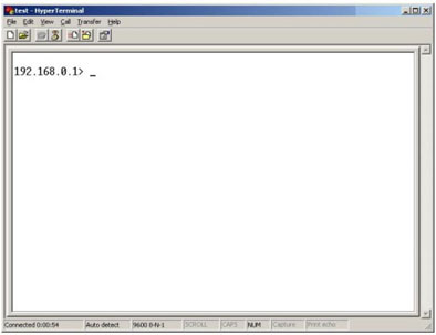 Для конфигурирования данных устройств необходимо получить доступ к их консоли. Для этого необходимо соединить консольным кабелем (RS232<->RS232), который входит в комплект поставки устройств, Com-порт компьютера с консольным портом DSL-1500G. После этого воспользуемся программой HyperTerminal, являющейся частью ОС Windows.