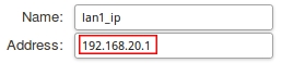 Здесь вам необходимо отредактировать два объекта. В объекте lan1_ip установить IP адрес 192.168.20.1 и в lan1_net установить подсеть 192.168.20.0/24