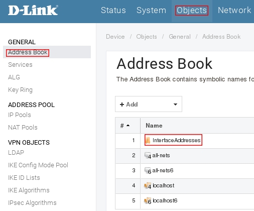 Пройдите Objects → Address Book → InterfaceAddresses.