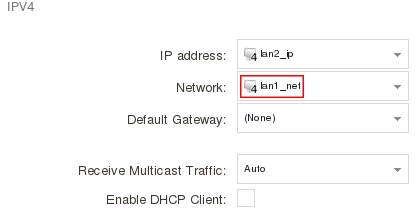 Выберите lan2 интерфейс. В его настройках в поле Network установите lan1_net.