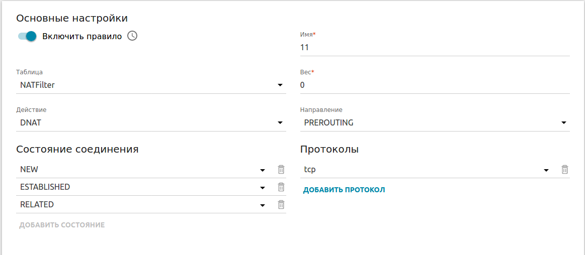 2. Создание правила для перенаправления портов с изменением внешнего порта.