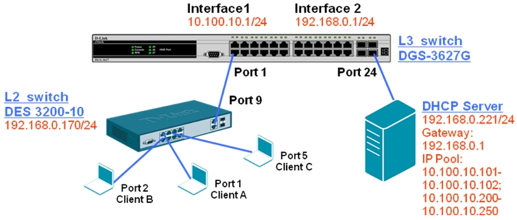 1. DHCP сервер должен быть дуступен с управляющего интерфейса коммутатора.
